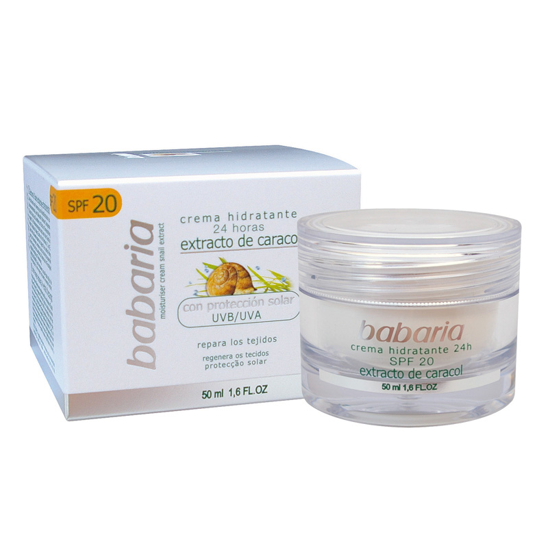 Actifs : Extrait de sécrétion d'escargot 20 %, Carraghen (Chondrus Crispus*), Allantoïne 0,2 %, Facteurs de Protection Solaires UVB/UVA (SPF 20)